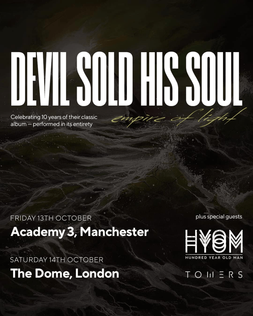 DEVIL SOLD HIS SOUL will play two headline shows to celebrate the ten year anniversary of ‘Empire of Light’ this October.