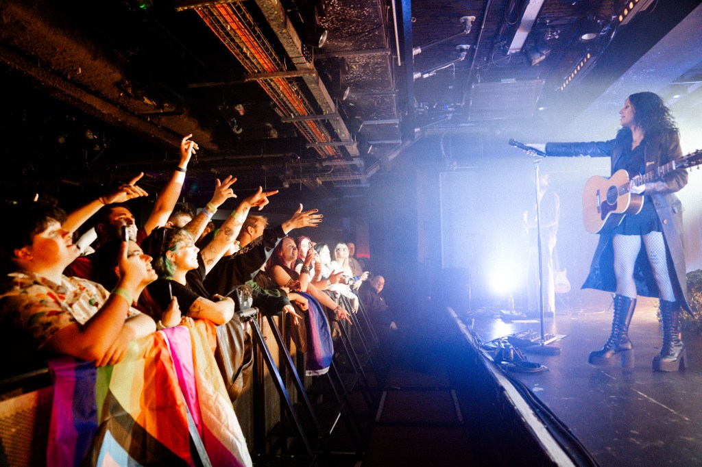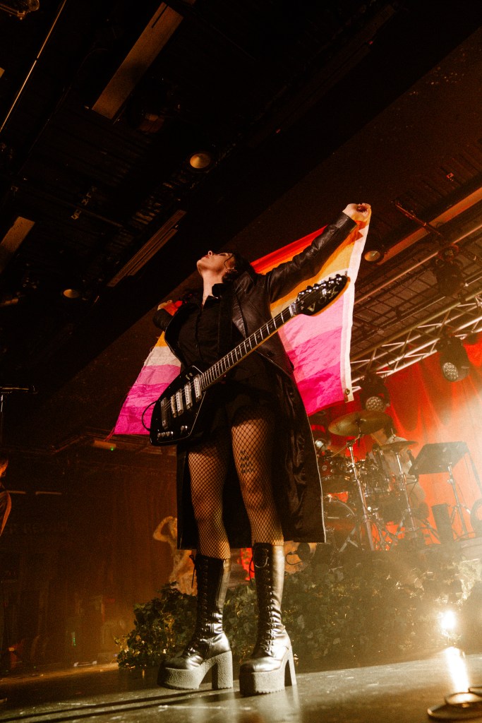 Now it was decision time, with Heather handing over the reigns to the Sheffield audience to decide what song would feature next, ‘Unwanted‘ or ‘Red‘. The latter getting the loudest roar and securing its spot on the setlist once again. The electrifying ‘Kiss Me Again‘ soon followed, before the band bowed out to ‘She’s My Religion‘ with Baron-Gracie wrapping herself in the lesbian flag to showcase how proud she is of her sexuality.