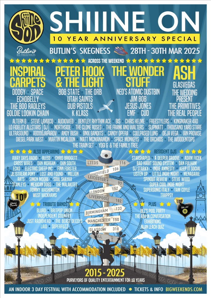 Shiiine On Weekender takes place at Butlins Skegness on 28th – 30th Marc 2025.