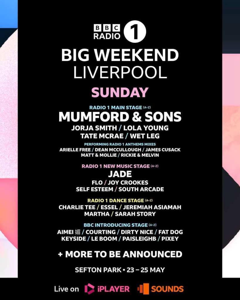 Finally, Sunday see’s JORJA SMITH, WET LEG and LOLA YOUNG join the main stage line-up, whilst JADE tops the Radio 1 New Music Stage with the addition of SELF ESTEEM and SOUTH ARCADE. Liverpool locals KEYSIDE and PIXEY will appear on the BBC Introducing Stage too.