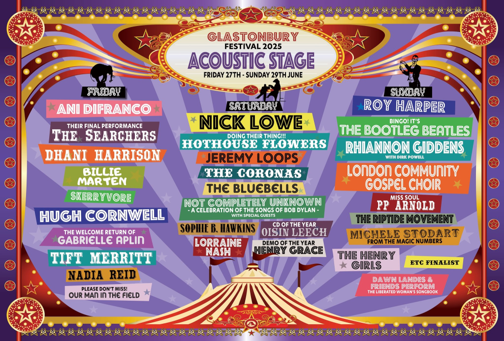 First up is this years acoustic stage acts. Topped by ANI DIFRANCO, NICK LOWE and ROY HARPER, the festival will also welcome the return of GABRIELLE APLIN, The Magic Numbers’ MICHELE STODART, HUGH CORNWELL and Demo of the Year HENRY GRACE to name a few. The full acoustic stage line-up can be found below.