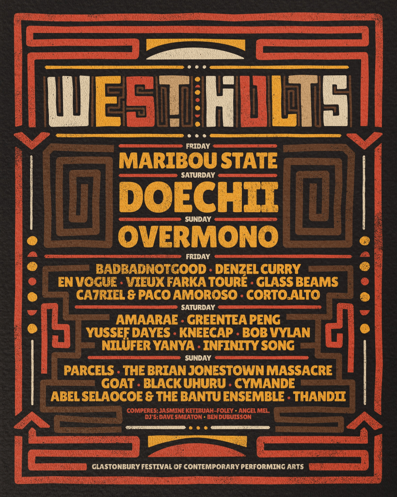 The West Holts stage includes headliners MARIBOU STATE, DOECHII and OVERMONO, whilst big names including rapper DENZEL CURRY, rap-rock duo BOB VYLAN, psychedelic rock band THE BRIAN JONESTOWN MASSACRE and Belfast hip-hop group KNEECAP. The full line-up for the West Holts stage can be found below.