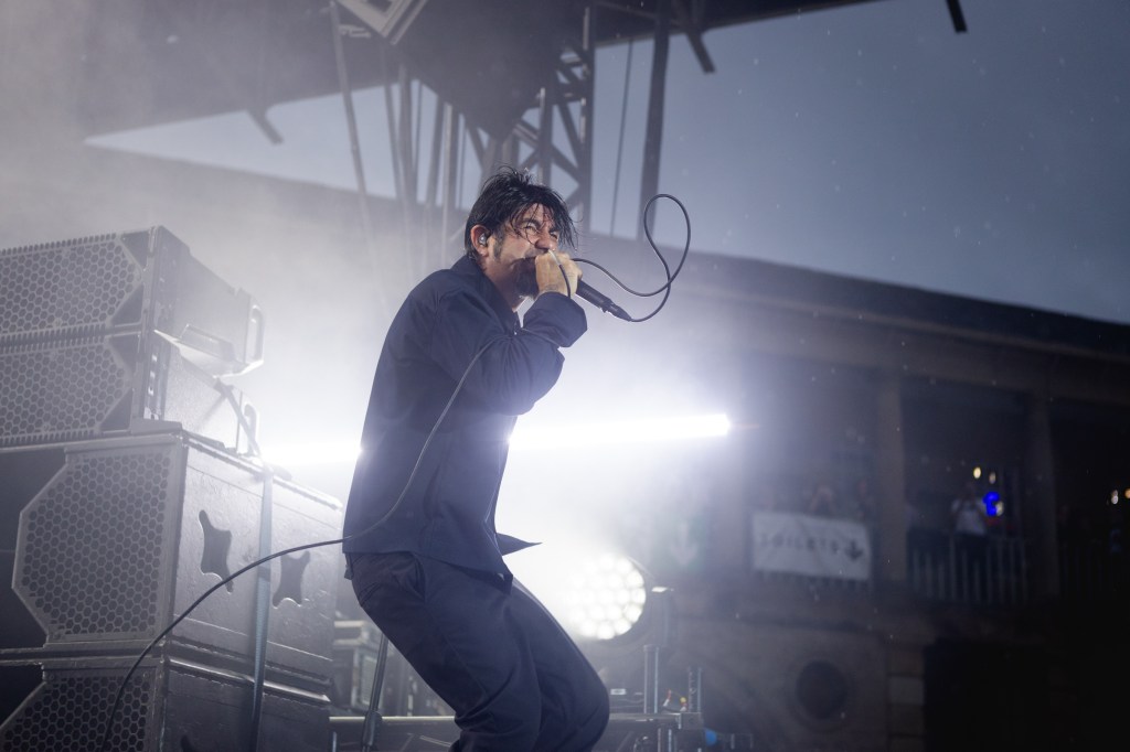 The very moment that DEFTONES made their way on stage, the skies parted, the rain poured and the crowd roared. The weather wasn’t going to dampen the mood though, as once ‘Be Quiet and Drive (Far Away)‘ kicked in, carnage unfolded. The crowd went wild immediately, with mosh pits rapidly forming while the entire front section were off of their feet. Frontman Chino Moreno fed off the crowds energy which saw him leaping around the stage, and that energy didn’t shy away anytime soon.