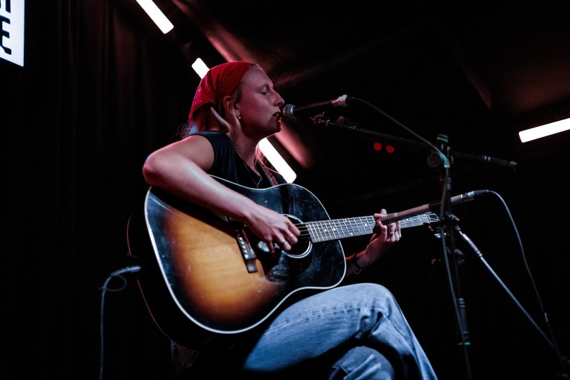 Seated on a wooden stool, Billie quietly tunes her guitar before beginning ‘Feeling‘, the first track off the album. It is an unassuming start but the effect on the crowd is immediate. Complete silence bounces through the room as those watching become completely entranced by the singer-songwriter’s presence. Her voice is clear and gentle and this vibe remains throughout the set.