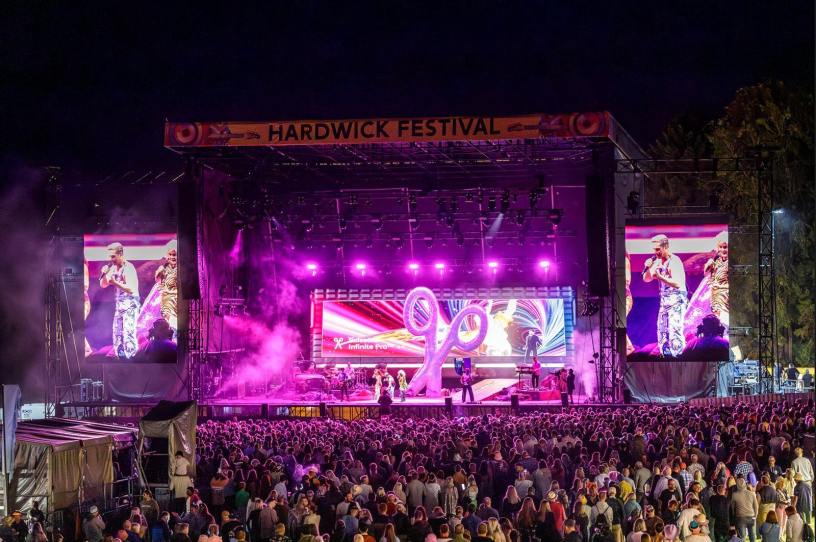 Scissor Sisters brought camp to Hardwick, with enough sensuality and vulnerability for the crowd to get behind. Glitter, feathers and sparkles blur the stage in expressive joy as the crowd sings the words back with a pep to their step. A mix of soulful jazz pop and disco blares out in an intoxicating rhythm, pulsating throughout the crowd as they move to the beat.