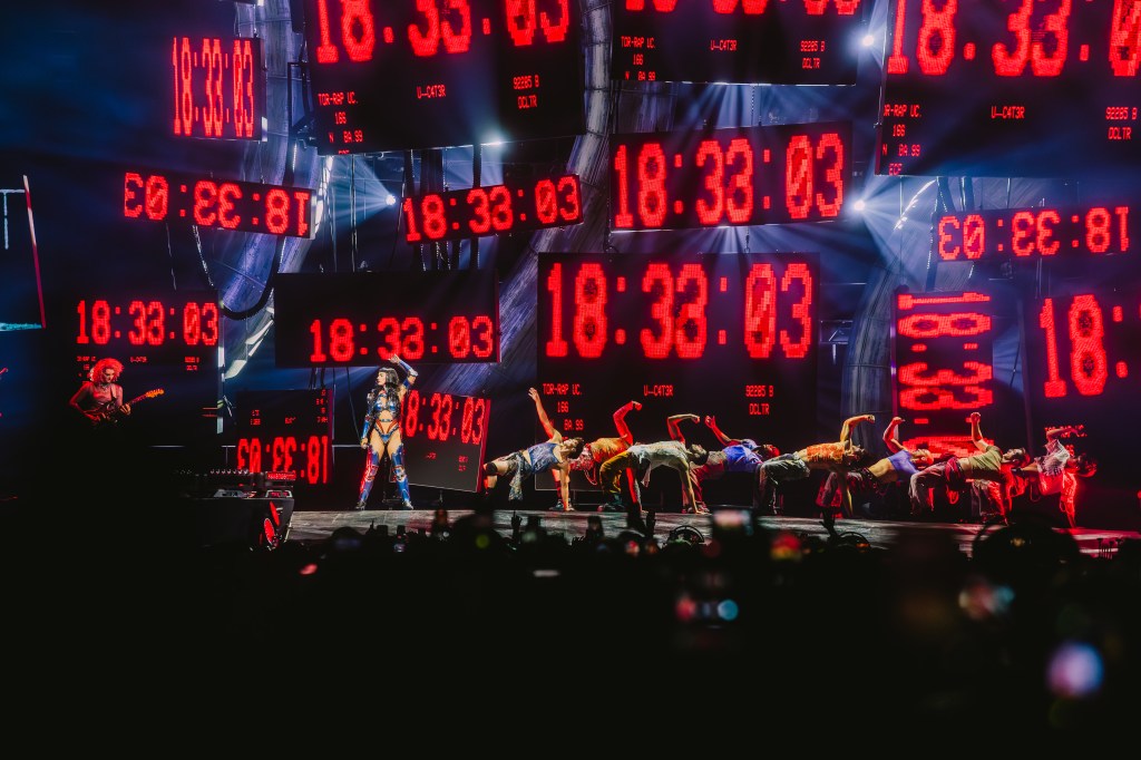 The night opens with “ARTIFICIAL”. Clad in chrome and backed by a Tron-esque digital landscape, Perry announces her arrival not as the bubbly firework of old, but as a pop entity rebooted for the AI era. It’s high-concept and visually elaborate.