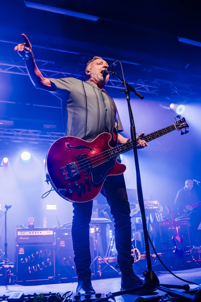 With such an extensive set list to treat the capacity West Yorkshire crowd with, Hooky took matters into his own hands with two sets, so there was no space for a support act for this tour, which was certainly a welcomed decision meaning there was more stage time for the iconic bassist. As the band emerged from the wings, the capacity Holmfirth crowd roared in excitement, ready for a trip down memory lane for New Order’s 2001 masterpiece. Hooky taking centre stage, eyes glued to the floor, ready to unleash ‘Get Ready‘. Opening with ‘Crystal‘, the lengthy track was enough to get the crowd warmed up just in time for ‘60 Miles an Hour‘. The atmosphere in the venue was electric, and despite little to no interaction with the crowd throughout, this allowed Hooky and co. to focus on perfecting the songs on stage. ‘Someone Like You’ went down an absolute storm, and the delivery of ‘Run Wild’ was exquisite. Rounding off the ‘Get Ready‘ portion with out takes ‘Brutal‘ and ‘Here To Stay‘, Hooky and the Light exited the stage for a brief interval before returning for a strong second half.