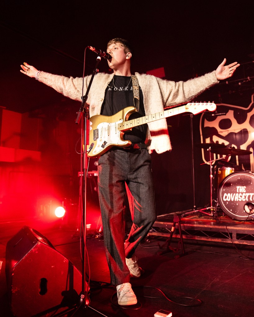 Soundtracked by ‘Mr Brightside’, The Covasettes took to the stage and opened with ‘Watching You’ – their newest release. The crowd was buzzing while the band’s charismatic frontman, Chris Buxton, boasted about the privilege of playing “Sheffield on a Saturday night”. After following with ‘Twit Twoo’ a playful, flirty track that features on the band’s 2019 EP, the band gave a special shoutout to their previous bus driver, Dave, who was greeted with a huge round of applause when he appeared onstage and was granted a ‘true rock and roll experience’, in the words of Chris Buxton.