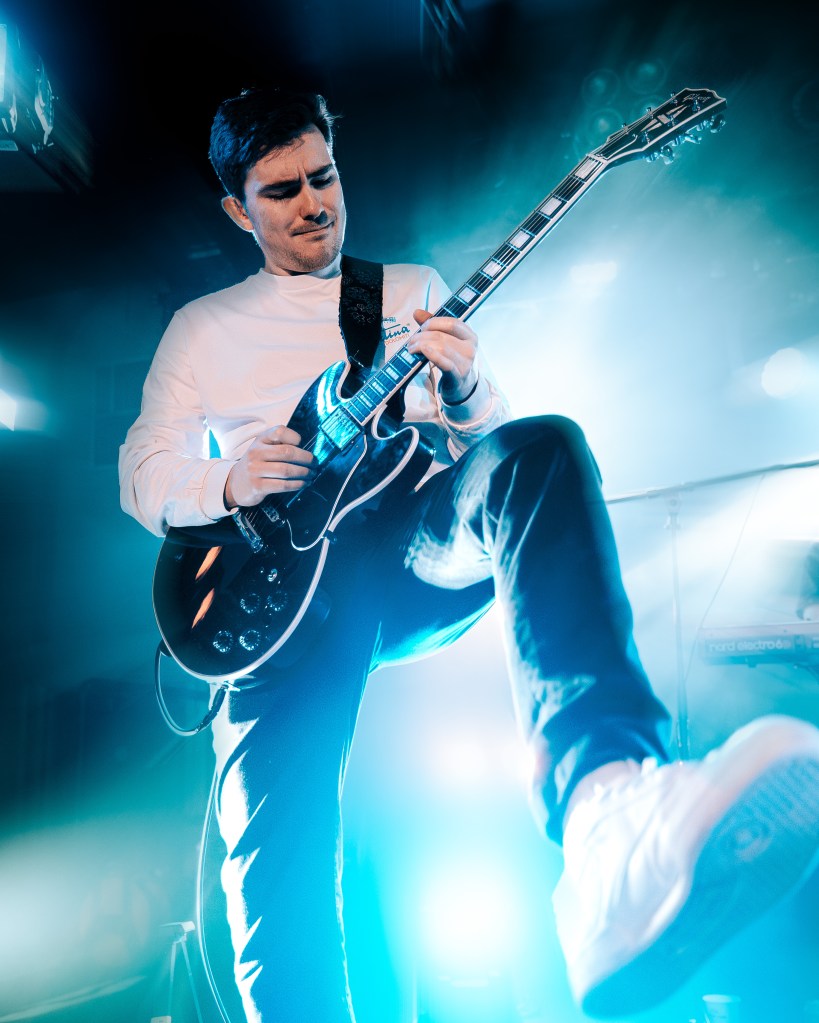 The Cheap Thrills came next, with their unapologetic groove and Liverpudlian charm, persuading the crowd to chant lyrics from tracks such as ‘Calypso Blue’, which features heartfelt, introspective lyrics to showcase their versatility as a quartet before playing ‘Walton Vale’ – a nod to the band’s hometown and the title of their newest release. Next was the aptly named ‘Party’ in which the band skyrocketed the energy in the 500-capacity venue, with the audience chanting lyrics such as ‘we’re not going, going, going home’. This cemented their impact as a band that not only play to audiences but create a unique kind of collective adrenaline rush. Their set concluded with the beloved fan-favourite ‘Codependence’, described by frontman, Lewis Pike, as a song about ‘looking after each other’ and this powerful declaration to the audience was the perfect way to finish before the final act of the night.