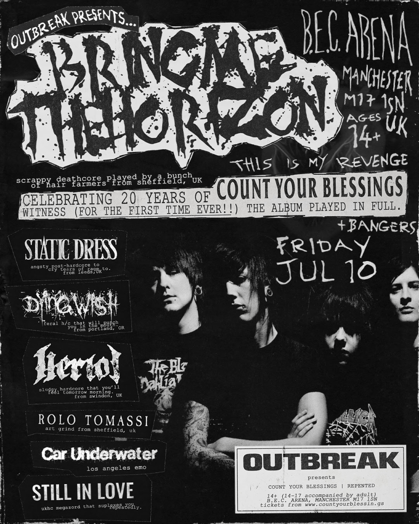 To celebrate two decades since the release of their debut album ‘Count Your Blessings’, Sheffield metal band Bring Me the Horizon have revealed details of a re-release as well as a special anniversary show, set to take place in Manchester this summer.